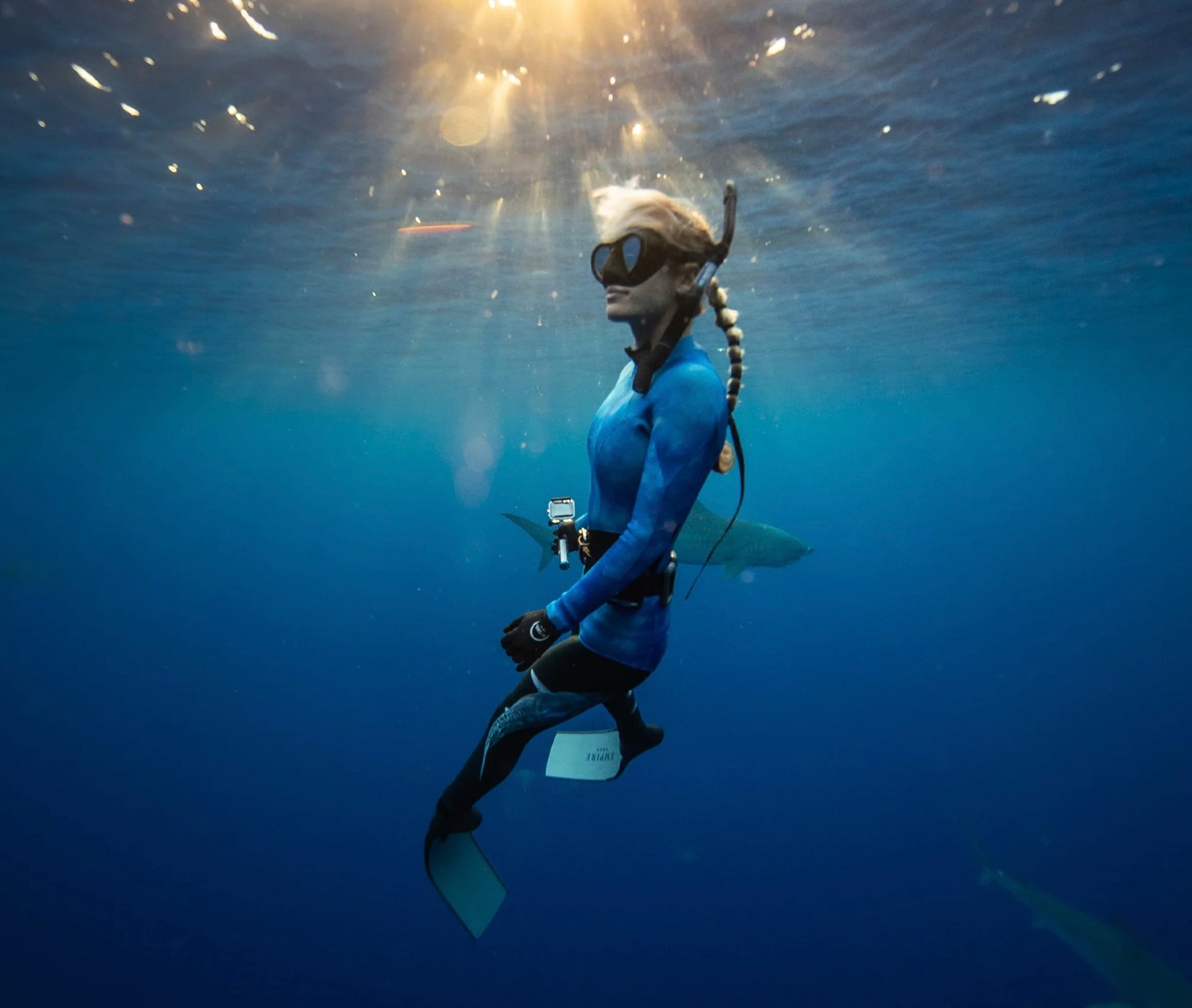 *Images of Ocean Ramsey in the Axis LS Back Zip 2mm Springsuit are shown with leggings layered with the springsuit.