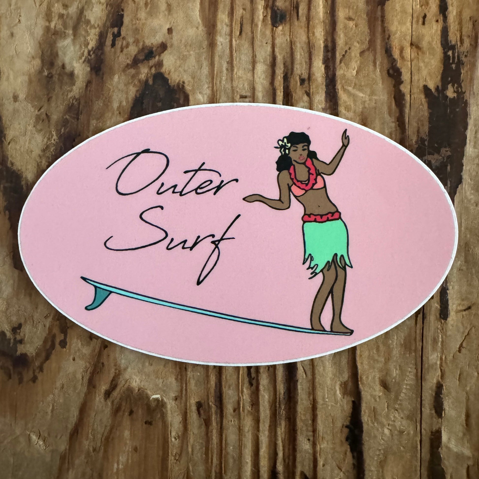 Add some tropical flair to all of your belongings with the Outer Surf Hula Sticker! This 5"x3" vinyl sticker features a playful hula girl design that's perfect for your water bottle, laptop, and more. Plus, its durable and weatherproof material ensures lasting style. Get your hula groove on now!
